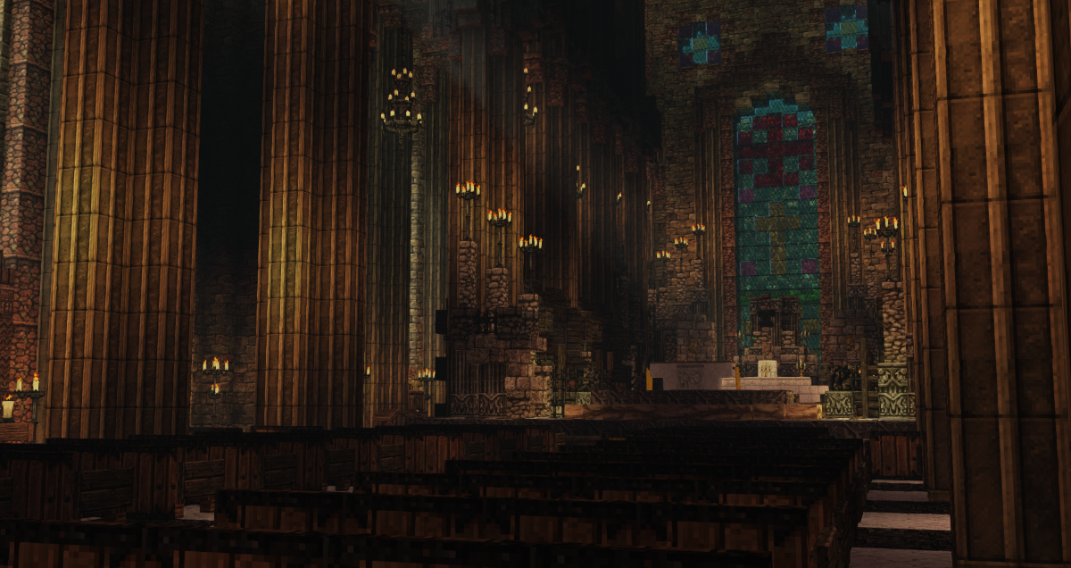 Собор Святоого Бартоломея Збынека - величайшее соружение всех веков и народов, от династии Рейнгардов, до нового монаршего рода Штрассе ибо династия не оставила после себя наследников. Две большие звоницы, библиотека, зал с большим главным алтарем. Все говорило о челичественности. Храм построен в знаменитом имперском стиле для какого характерны заострённые формы, возвышающиеся к небу, к самой Богине. Вход в собор представлен тремя большими вратами, а те которые боковые открывают лишь по праздневствам. Зал богато украшен, в том дух удовлетворения, запахи ладана, приятная ушам музыка церковоного гора. Мне, брату Афалеону посчастливилось побывать с Его Святейшеством Иоанном Гроппером, папой Митранским, быть в главном алтаре храма, где есть места для духовенства. Богатейшая храмовая библиотека расположена в северной части храма. Витражи с разными сюжетами из книги жизни украшают храмовые окна, а главный витраж с гербом освещает главный алтарь. Могу приметить, что верующих прибывало много. В день когда был я проходило празднование Михаила Безбашенного, святого.