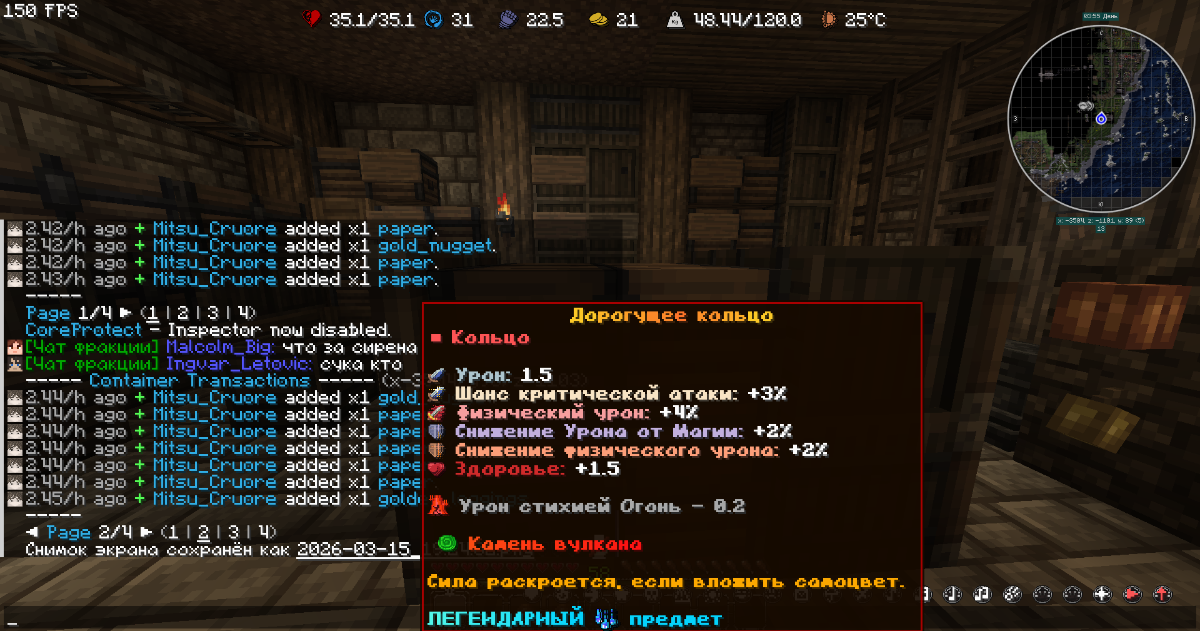 5. Куда разместить инвентарь/координаты места/эндер сундук: ev ивентарь